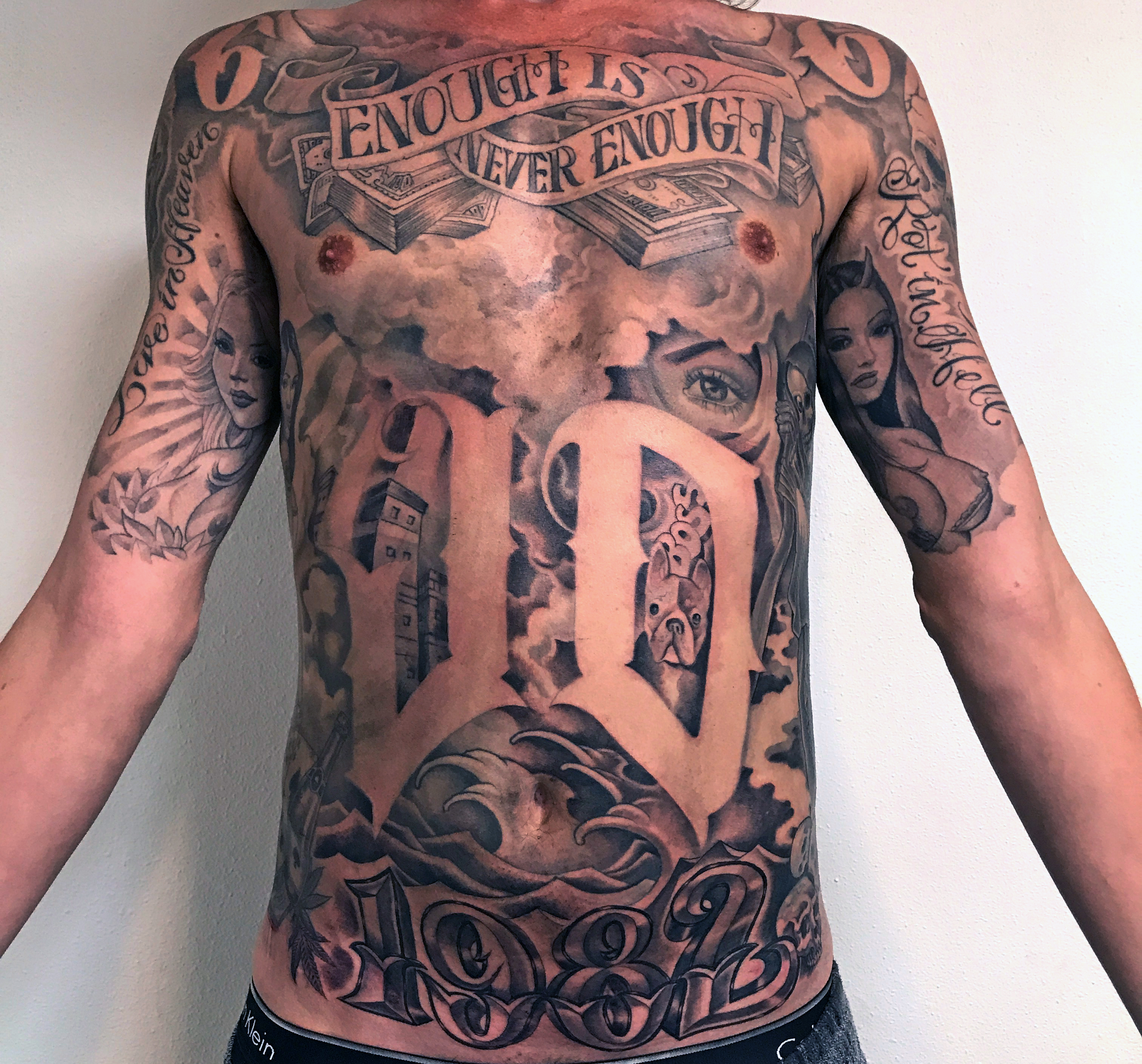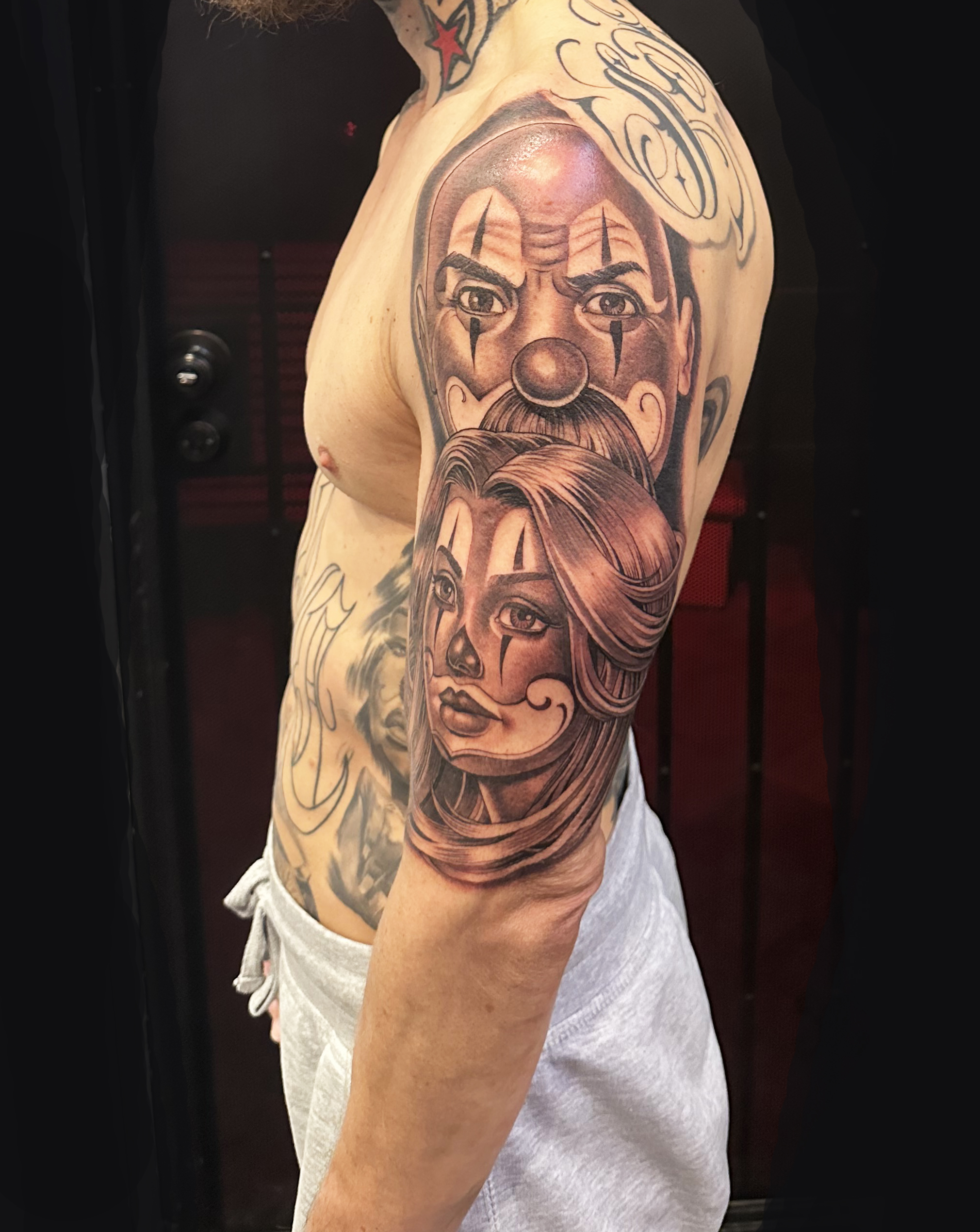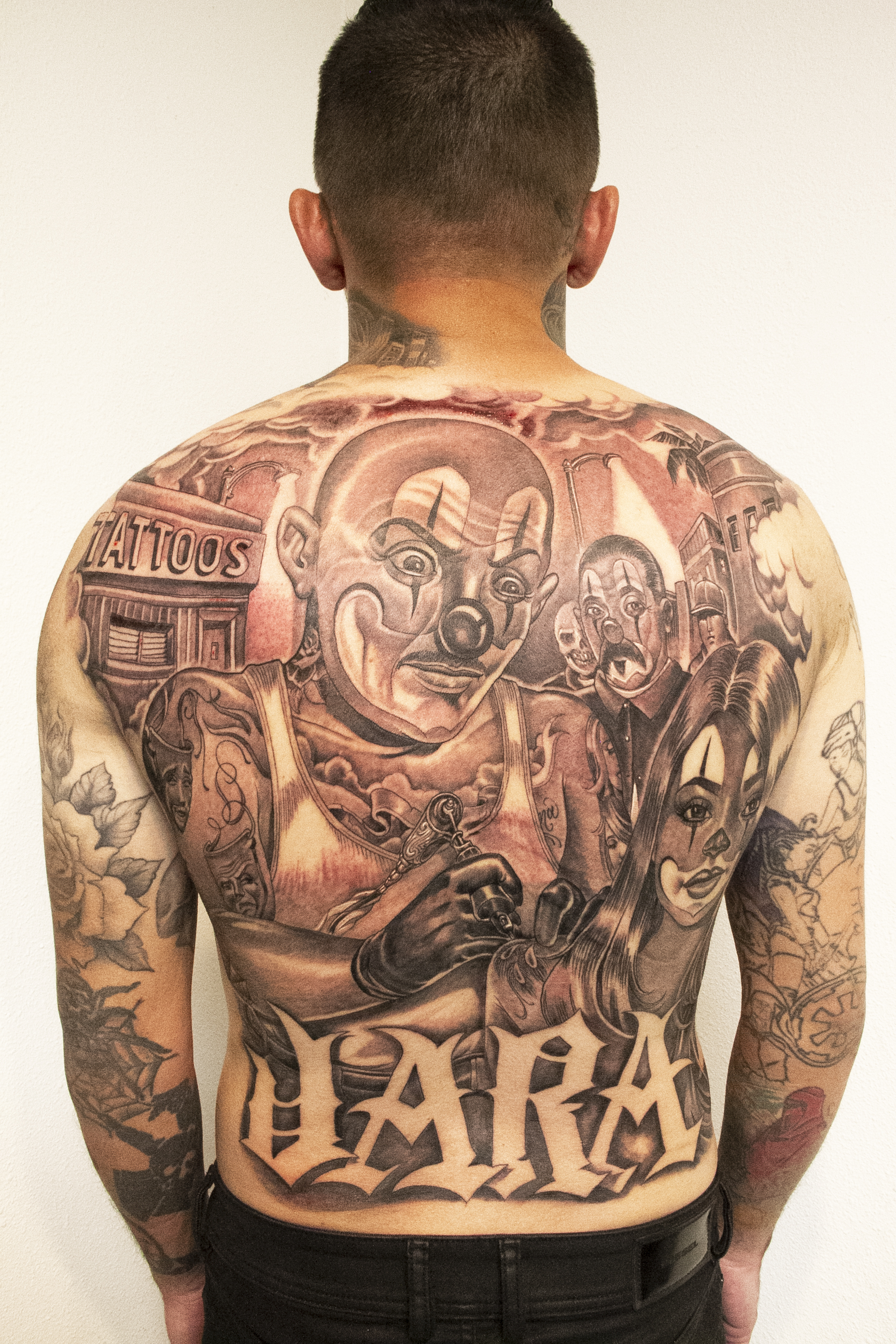 Born and raised in Los Angeles, Mister Cartoon was immersed in art from an early age. He began his career as a graffiti artist before branching into murals, album covers, logos, and now most famously known for his tattoos. His richly detailed, hand-rendered designs pull much of their inspiration from the Los Angeles of Cartoon’s youth. At one time, the black and grey, fine line style was synonymous with LA street life. Cartoon’s work has helped bridge the gap between those hardscrabble beginnings and the style’s current popularity. Stars such as Eminem, Travis Barker, Slash, Dr. Dre, 50 Cent, Snoop Dogg, along with athletes like CC Sabathia, Amarie Stoudemire and Carlos Boozer wear Cartoon’s art on their skin.Having already gained a worldwide following from his tattooing, Cartoon has attracted a diverse and devoted fan base for his work in other media as well. The result has been highly acclaimed gallery appearances and art shows from London, Paris, Tokyo, and beyond.Cartoon’s art has been featured in numerous publications including Rolling Stone, The New York Times, The Wall Street Journal, Complex, Juxtapoze, XXL, GQ, and others.Cartoons custom muralled car collection and Art Work has been featured internationally from art shows in London and Japan to the Los Angeles Museum of Contemporary Art. His style and art transcends many artistic mediums. Service to the community has been an essential part of Cartoon’s career. He takes place in monthly outreach programs where he shares his knowledge with young people and devotes time to many other community-based initiatives.